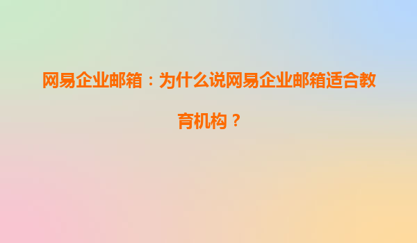 网易企业邮箱:为什么说网易企业邮箱适合教育机构?
