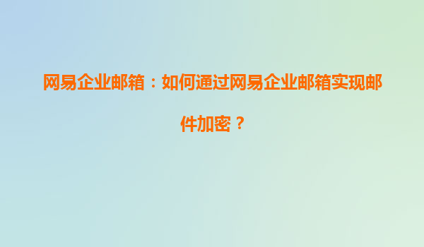 网易企业邮箱:如何通过网易企业邮箱实现邮件加密?