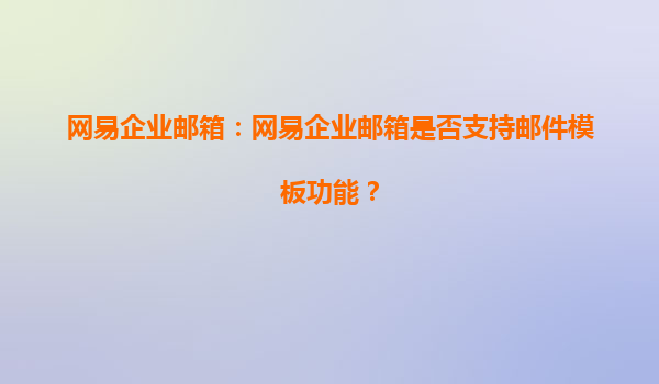 网易企业邮箱:深度解析邮件模板功能及其应用价值