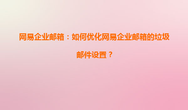 网易企业邮箱:如何优化网易企业邮箱的垃圾邮件设置?