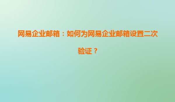网易企业邮箱:如何为网易企业邮箱设置二次验证?