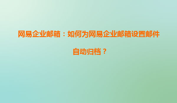 网易企业邮箱:如何为网易企业邮箱设置邮件自动归档?