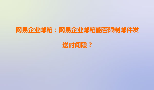 网易企业邮箱:网易企业邮箱能否限制邮件发送时间段?