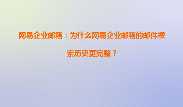 网易企业邮箱:为什么网易企业邮箱的邮件搜索历史更完整?