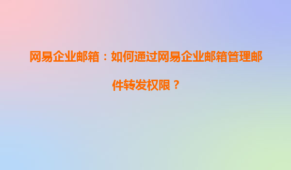 网易企业邮箱:如何通过网易企业邮箱管理邮件转发权限?