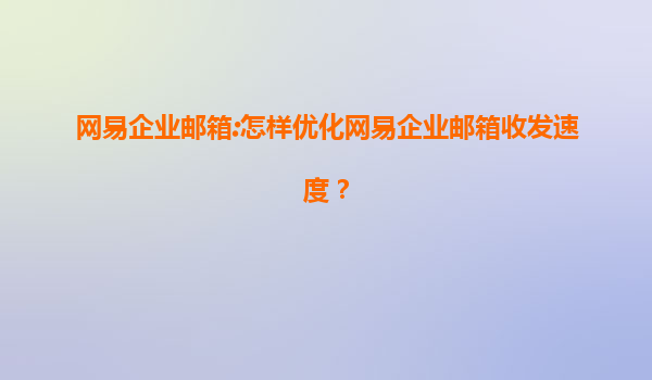 网易企业邮箱:如何优化收发速度?