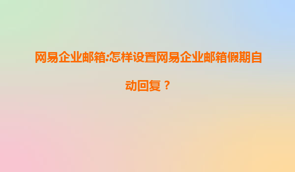 网易企业邮箱:如何设置假期自动回复功能?
