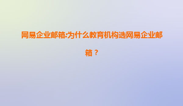 网易企业邮箱:为什么教育机构选网易企业邮箱?