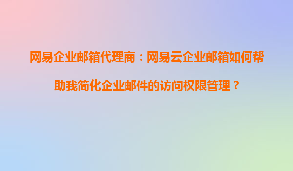 网易企业邮箱代理商:网易云企业邮箱如何帮助我简化企业邮件的访问权限管理?