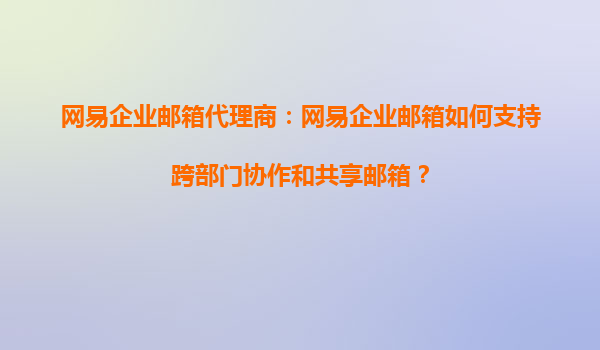 网易企业邮箱代理商:网易企业邮箱如何支持跨部门协作和共享邮箱?