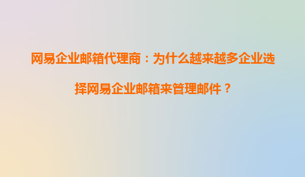 网易企业邮箱代理商:为什么越来越多企业选择网易企业邮箱来管理邮件?