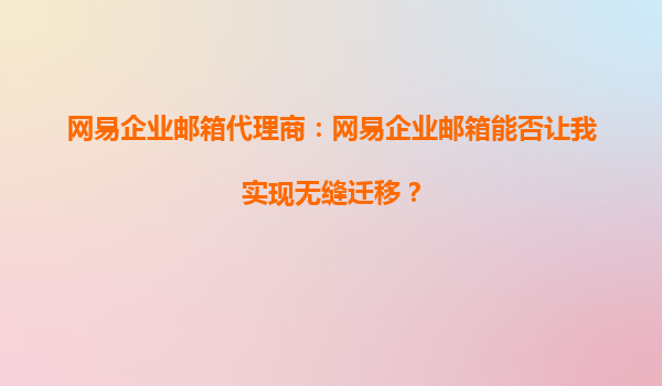 网易企业邮箱代理商:网易企业邮箱能否让我实现无缝迁移?