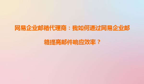 网易企业邮箱代理商:我如何通过网易企业邮箱提高邮件响应效率?