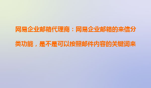 网易企业邮箱来信分类功能:智能化管理提升办公效率