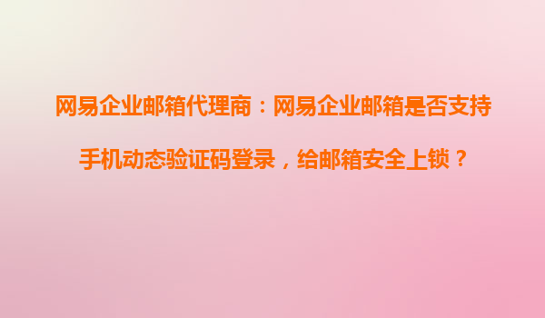 网易企业邮箱代理商:网易企业邮箱是否支持手机动态验证码登录,给邮箱安全上锁?