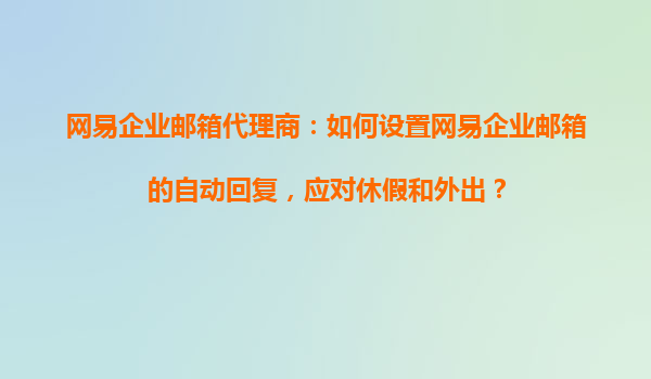 网易企业邮箱代理商:如何设置网易企业邮箱的自动回复,应对休假和外出?