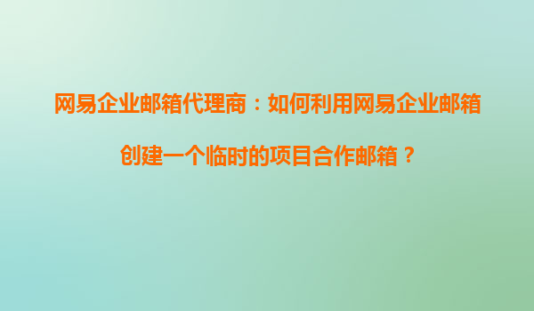 网易企业邮箱代理商:如何利用网易企业邮箱创建一个临时的项目合作邮箱?