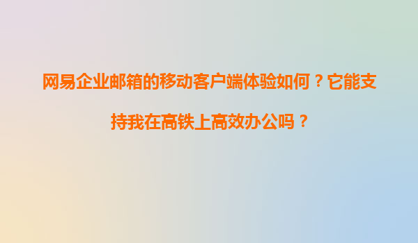 在快节奏的商务场景中,移动办公已成为刚需。高铁作为中国特色的"移动办公室",对邮箱客户端提出了三大核心要求: