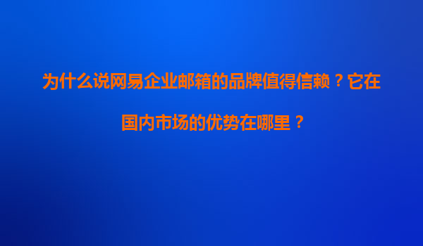 网易企业邮箱凭借顶尖的安全技术、深度本土化功能设计、卓越的跨境通信能力和高性价比服务,在国内企业邮箱市场建立了独特竞争优势。其以企业级安全为基石,以智能化管理为特色,以生态整合为延展的立体化服务体系,不仅满足当前企业的数字化通信需求,更为未来协作场景演进预留了充足空间,是成长型企业及跨国机构数字化转型的理想之选。