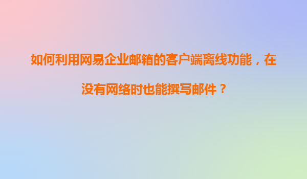 网易企业邮箱作为国内领先的企业级邮箱服务提供商,不仅提供稳定高效的在线邮件服务,还贴心地为用户设计了客户端离线功能。这一功能让用户在没有网络连接的情况下,依然能够撰写邮件、管理草稿箱,甚至查看部分已缓存的邮件内容。通过合理设置,用户可以在离线状态下保持高效工作,待网络恢复后一键同步发送。