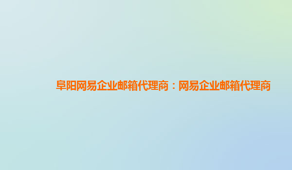阜阳网易企业邮箱代理商:网易企业邮箱代理商