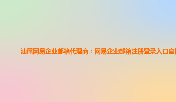 网易企业邮箱是一款专为企业提供的全方位邮件解决方案。作为汕尾地区的网易企业邮箱代理商,我们为您带来方便快捷的注册和登录入口,以及一系列优势,让您体验到无与伦比的企业邮箱服务。