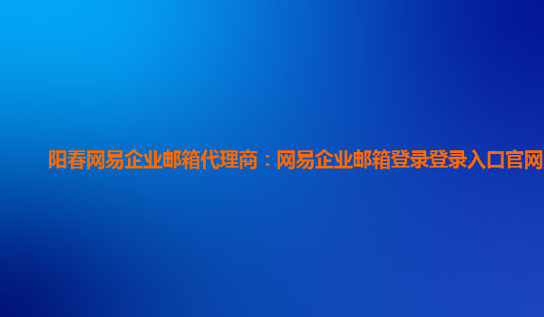 阳春网易企业邮箱代理商:网易企业邮箱登录登录入口官网账号