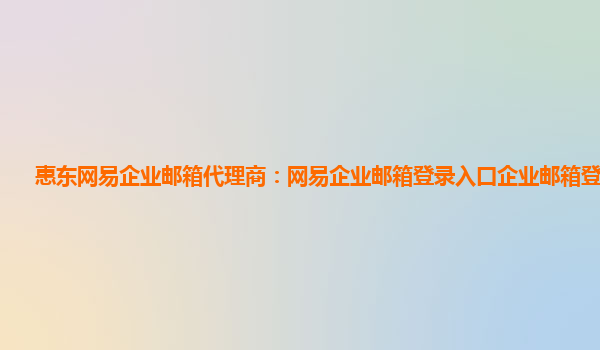 惠东网易企业邮箱代理商:网易企业邮箱登录入口企业邮箱登录入口