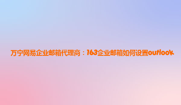 万宁网易企业邮箱代理商:163企业邮箱如何设置outlook