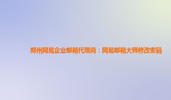 郑州网易企业邮箱代理商:网易邮箱大师修改密码