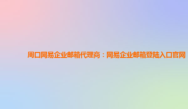 周口网易企业邮箱代理商——网易企业邮箱登陆入口官网