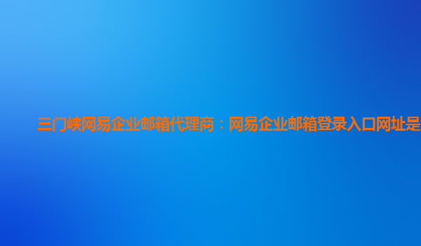 三门峡网易企业邮箱代理商:网易企业邮箱登录入口网址是多少