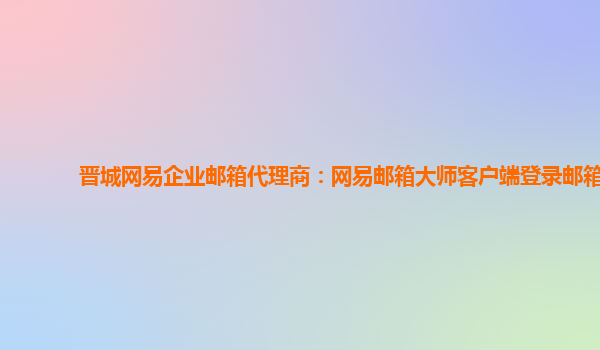 晋城网易企业邮箱代理商:网易邮箱大师客户端登录邮箱
