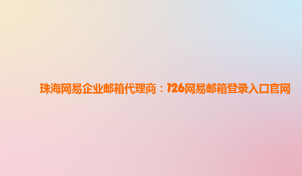 珠海网易企业邮箱代理商:126网易邮箱登录入口官网