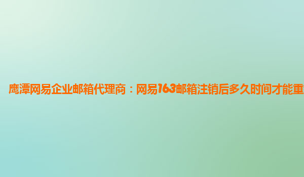 鹰潭网易企业邮箱代理商:网易163邮箱注销后多久时间才能重新注册