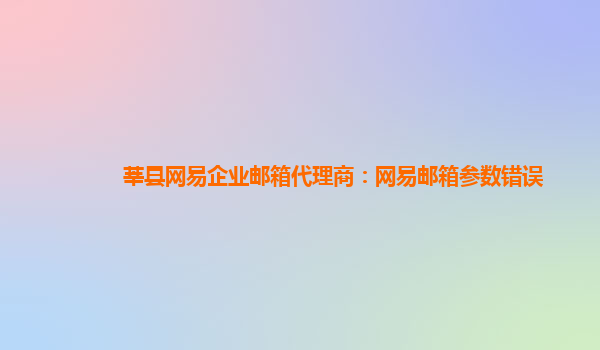 作为中国最大的互联网公司之一,网易一直以来致力于提供各类优质的在线服务和产品。其中,网易企业邮箱就是其拳头产品之一,受到了无数企业用户的喜爱并认可。今天,我们要讲的就是莘县网易企业邮箱代理商的相关信息,以及网易邮箱所出现的参数错误如何解决。