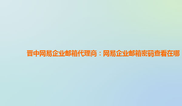 晋中网易企业邮箱代理商:网易企业邮箱密码查看在哪