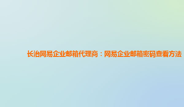 长治网易企业邮箱代理商:网易企业邮箱密码查看方法
