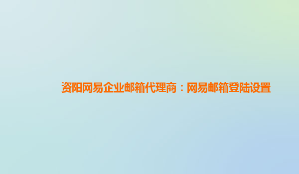 资阳网易企业邮箱代理商:网易邮箱登陆设置