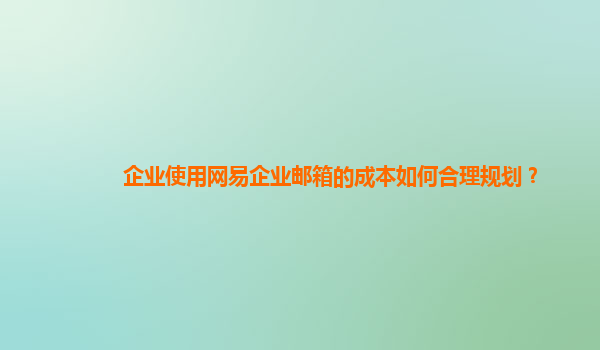 企业使用网易企业邮箱的成本合理规划