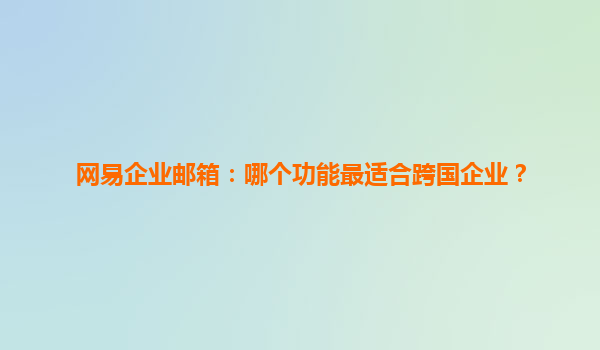 在全球化经济的大背景下,跨国企业面临着沟通协作的巨大挑战。选择一个高效、稳定且功能全面的企业邮箱系统,对于保证信息流畅传递和提升工作效率至关重要。网易企业邮箱以其卓越的性能和丰富的功能,成为众多跨国企业的首选。