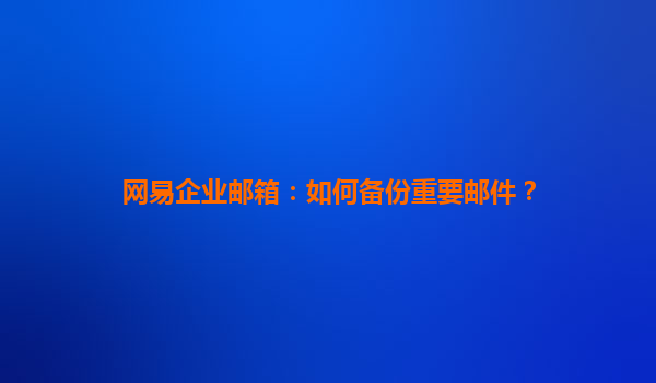 网易企业邮箱提供了多种方式来备份和管理邮箱中的重要邮件,确保用户能够在不小心删除或遇到邮箱故障时,仍然能够找回重要的信息。