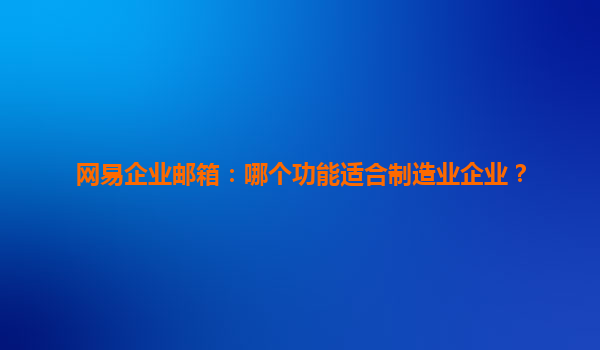 在数字化时代,企业沟通变得尤为重要,尤其是制造业企业,它们的生产与运营往往需要高效、稳定的通讯工具。网易企业邮箱凭借其强大的功能与稳定的性能,成为了许多企业的首选。本文将结合制造业企业的实际需求,详细分析网易企业邮箱的优势及其如何为制造业企业带来帮助。