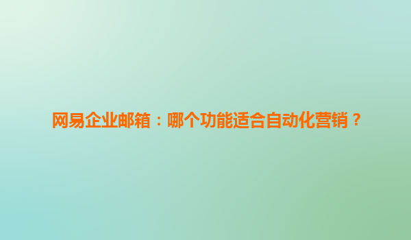 要利用网易企业邮箱进行自动化营销,企业可以从以下几个方面入手: