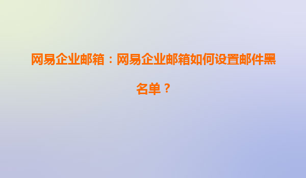 为了避免垃圾邮件干扰,网易企业邮箱提供了邮件黑名单的功能。以下是设置黑名单的详细步骤: