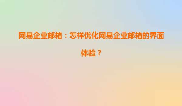为了进一步提升网易企业邮箱的用户体验,我们可以从以下几个方面对其界面进行优化: