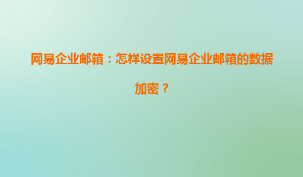 在现代信息化办公环境中,电子邮件成为了企业日常沟通的主要方式。然而,随着数据安全问题的日益严重,保护企业邮件的隐私和安全显得尤为重要。网易企业邮箱作为国内领先的企业邮箱服务平台,提供了多种安全保障措施,其中数据加密是确保邮件安全的一项重要功能。本文将介绍如何设置网易企业邮箱的数据加密,并结合网易企业邮箱及其代理商的优势,帮助企业实现高效、安全的邮件管理。
