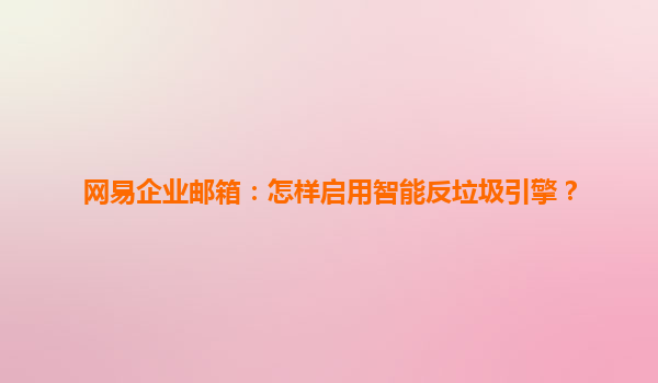 网易企业邮箱:怎样启用智能反垃圾引擎?