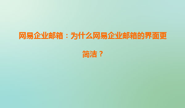 网易企业邮箱:为什么网易企业邮箱的界面更简洁?
