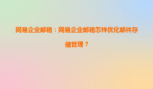 在信息化飞速发展的今天,电子邮件已经成为企业通信不可或缺的工具之一。对于企业来说,高效、安全的邮件系统是提升工作效率、保障信息安全的重要保障。网易企业邮箱作为国内领先的企业邮箱服务提供者,以其稳定性、安全性和高性价比受到众多企业的青睐。本文将探讨如何通过网易企业邮箱优化邮件存储管理。